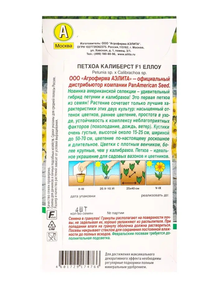 Семена цветов Петхоа Калиберст F1 еллоу (драже в пробирке) Спецсерия PanAmerican, Ц/П,4 шт. 1094585