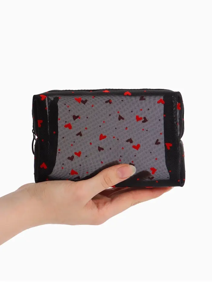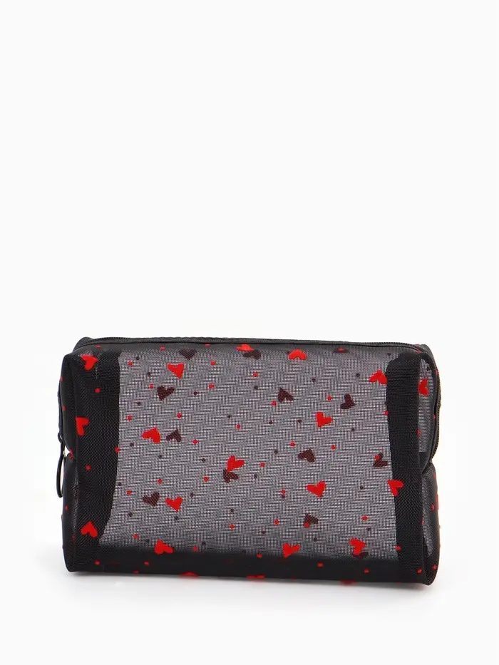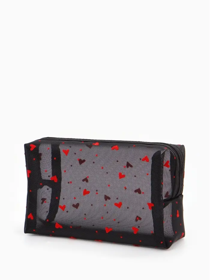 Косметичка дор Сердца, сетка 18*7,5*10, отд на молнии, черный