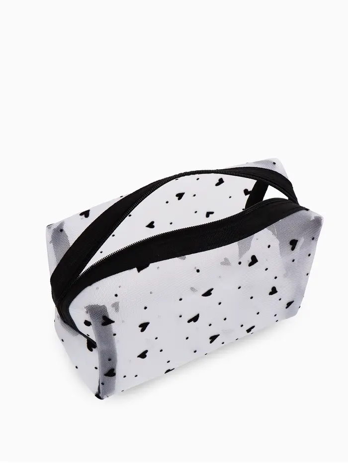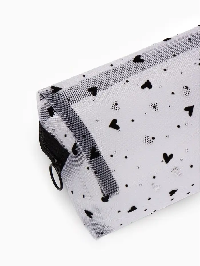 Косметичка дор Сердца, сетка 18*7,5*10, отд на молнии, белый