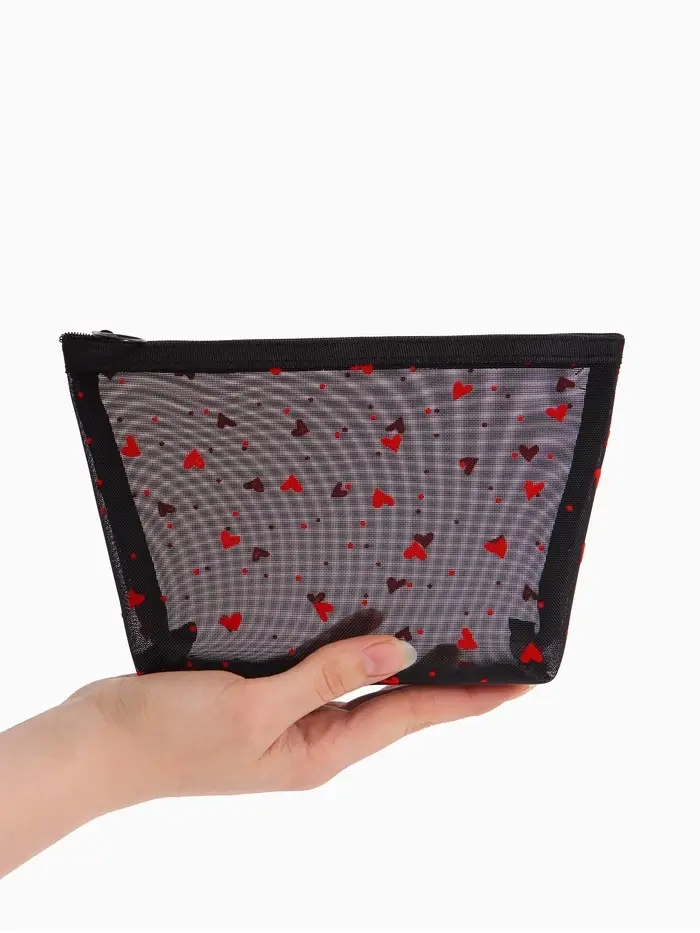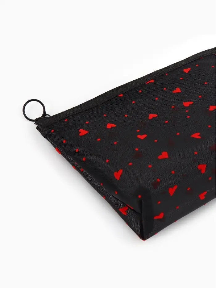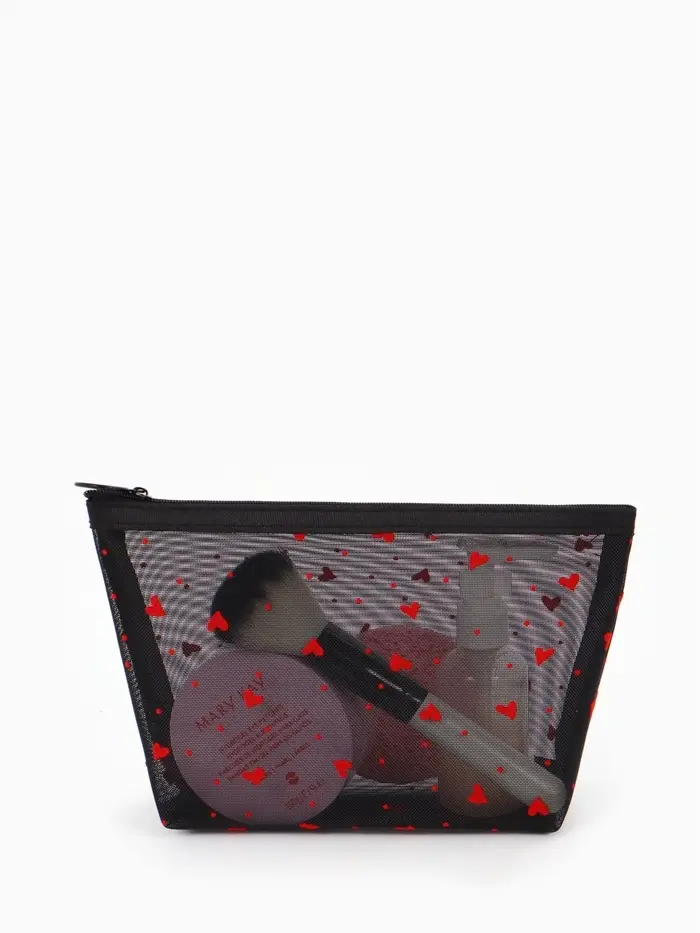 Косметичка дор Сердца, сетка 17*6,5*13,5, отд на молнии, черный