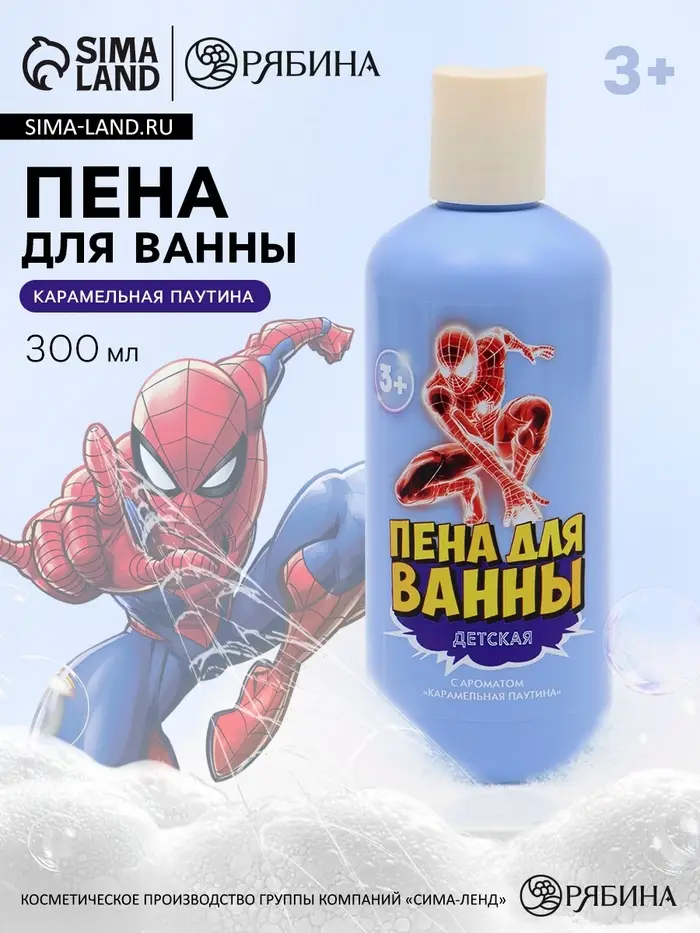 Детская пена для ванны, аромат сладкая паутинка, 300 мл, Супергерой