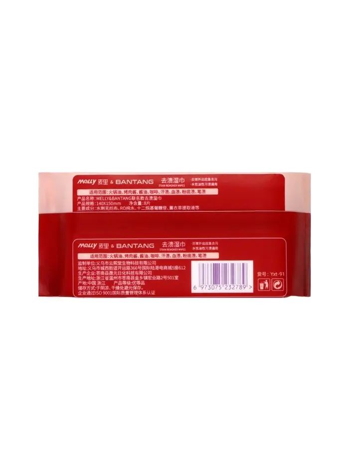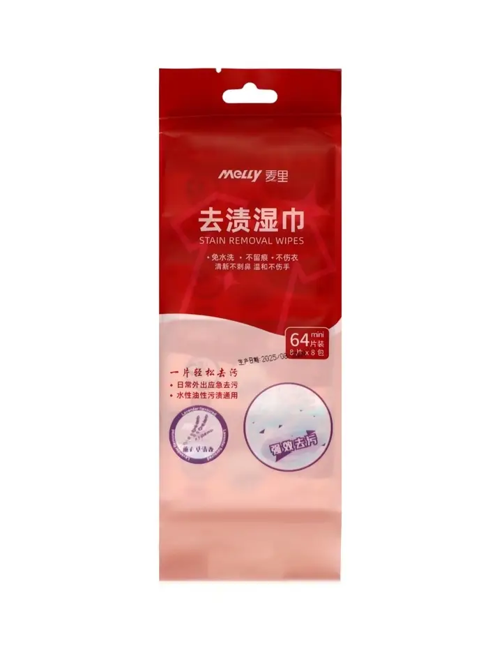 Салфетки от пятен на одежде MELLY, 8 упаковок × 8 шт. (64 салфетки)