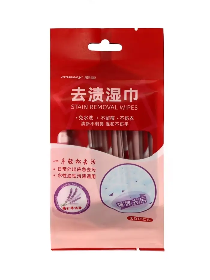 Быстрое решение для непредвиденных загрязнений! Набор из 20 салфеток поможет сохранить одежду чистой и опрятной в любой ситуации — дома, на работе или в дороге.