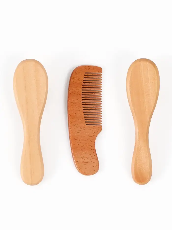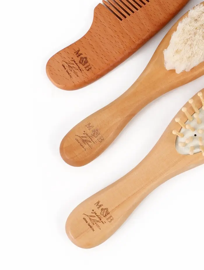 Набор деревянных расчесок детских с натуральной щетиной, 3 шт в коробке, M&B