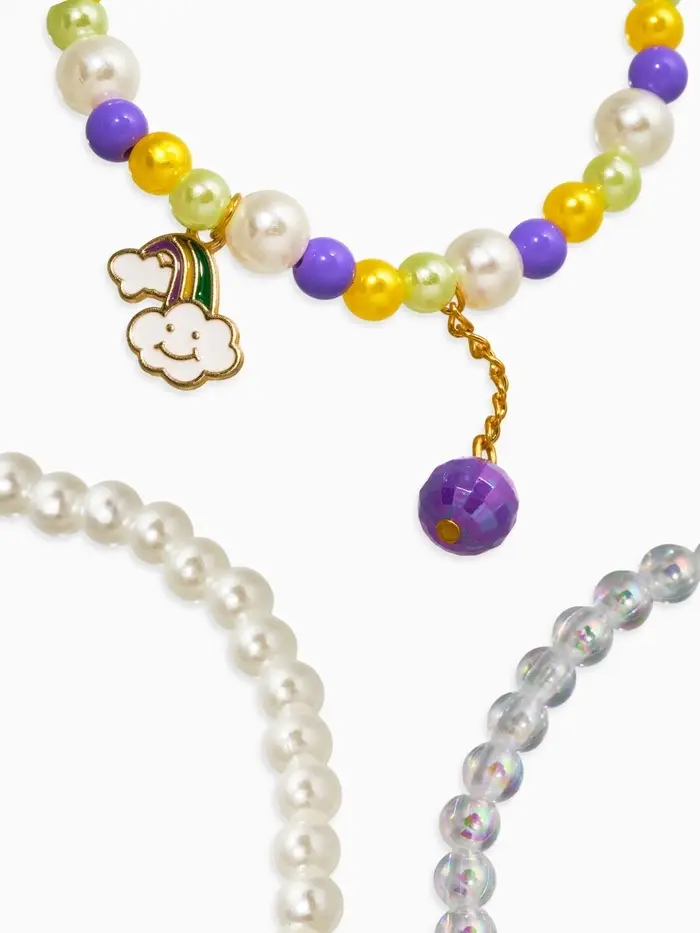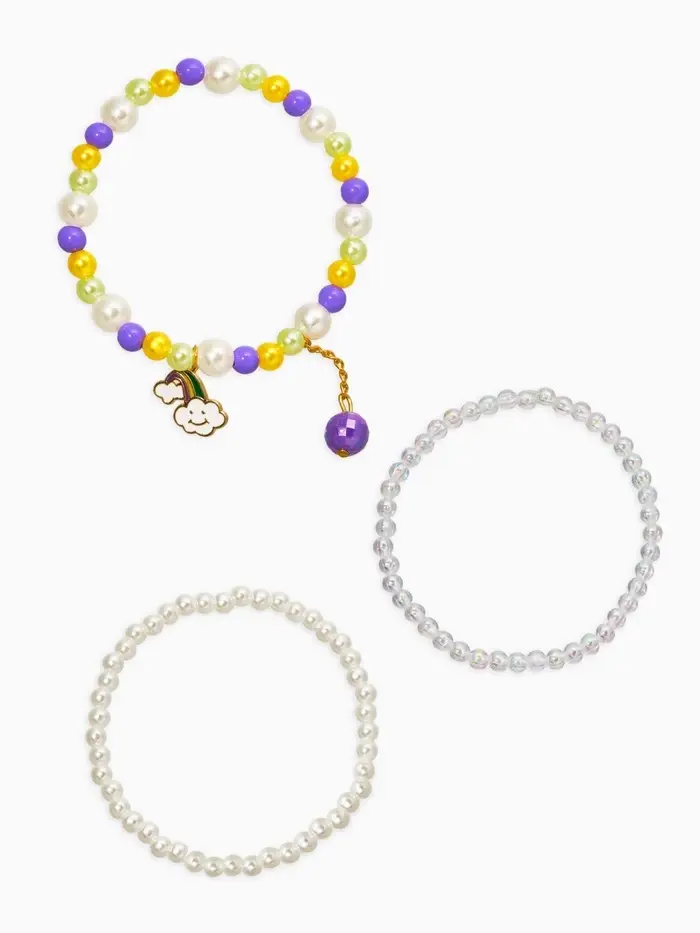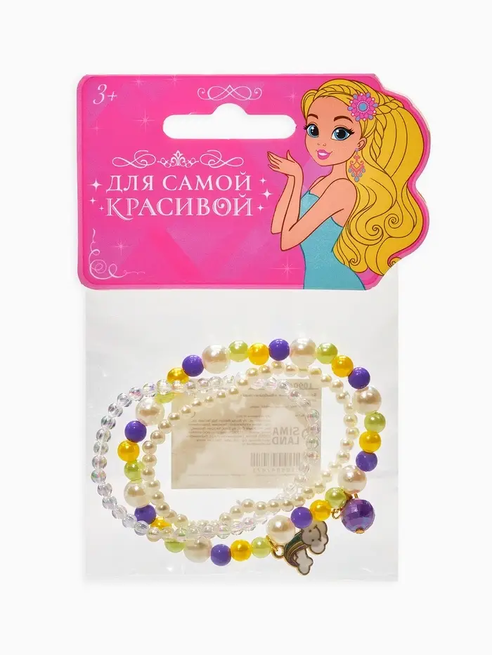 Браслет детский «Выбражулька», 3 шт. набор, радуга с подвеской, жемчуг, цветной