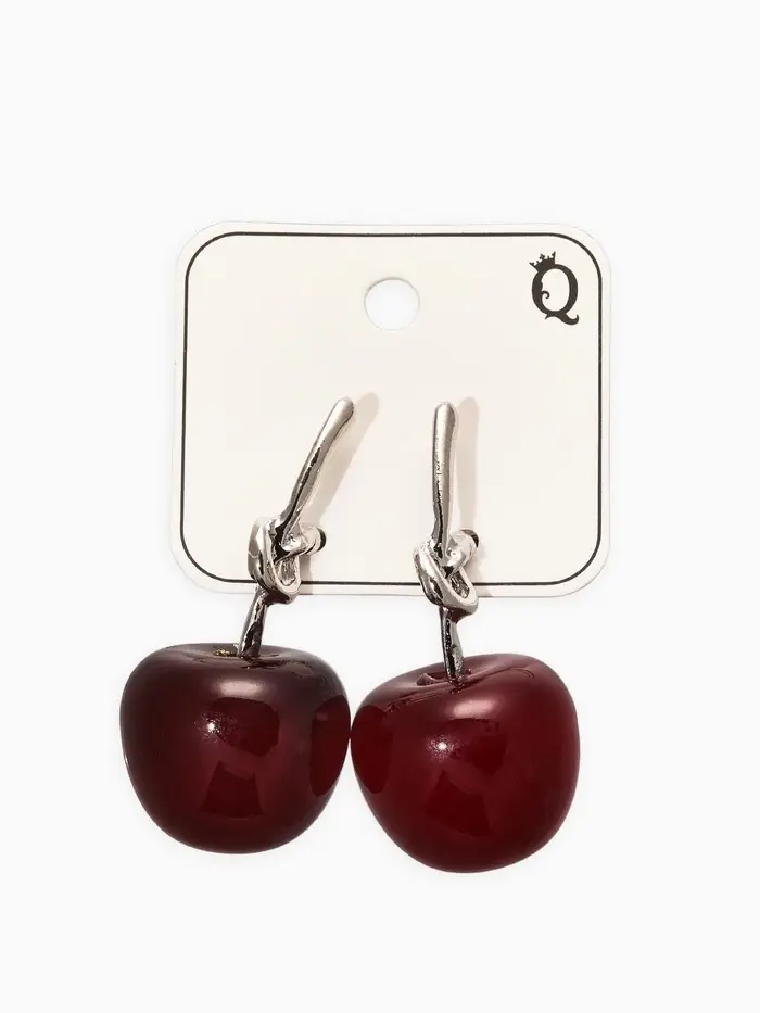 Серьги "Вишня" узел, цвет бордовый в серебре
