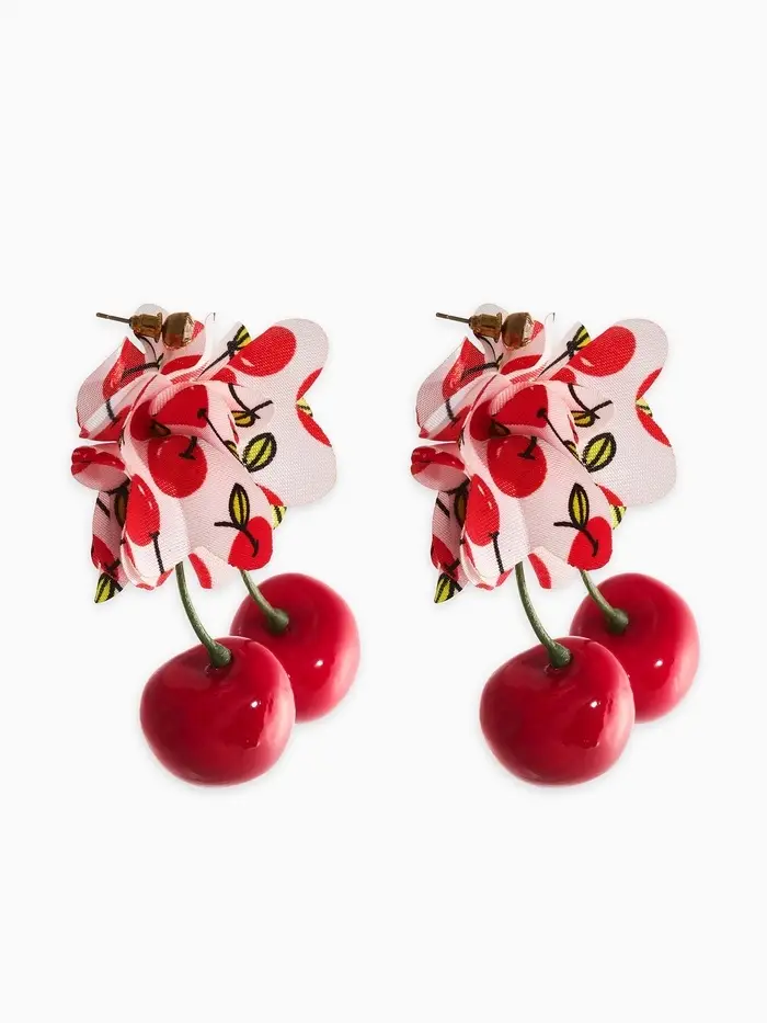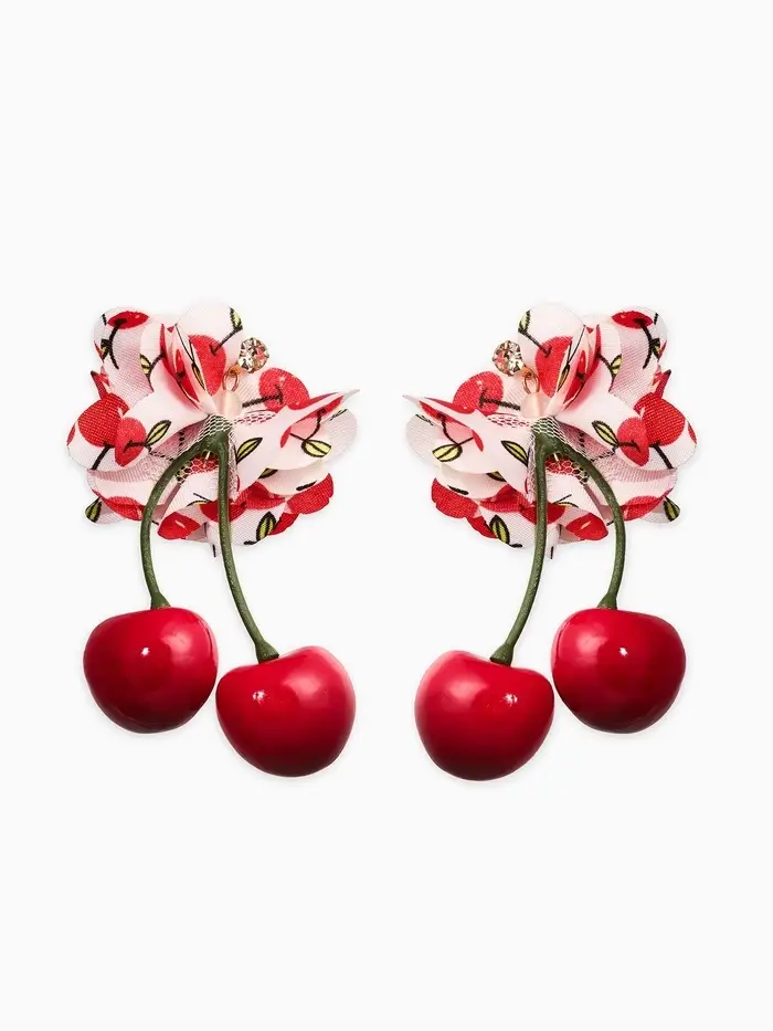 Серьги «Вишня с цветами», цветные в золоте