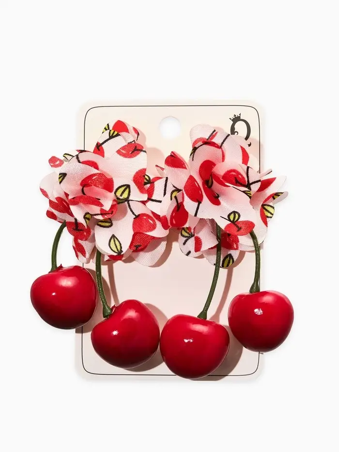 Серьги «Вишня с бантиками», красные в золоте