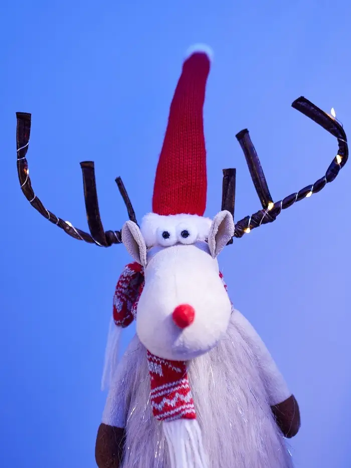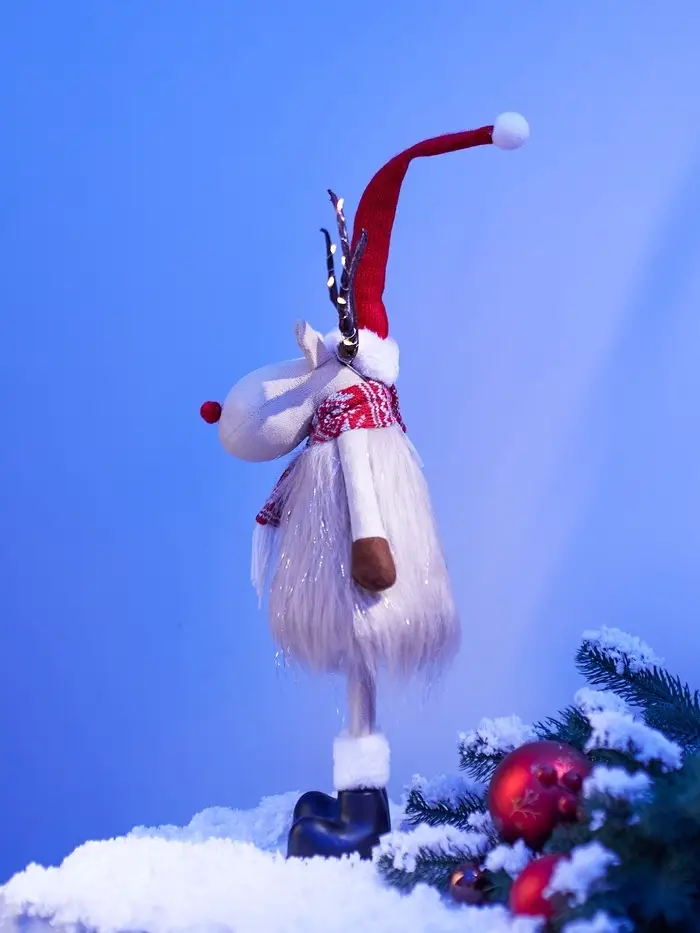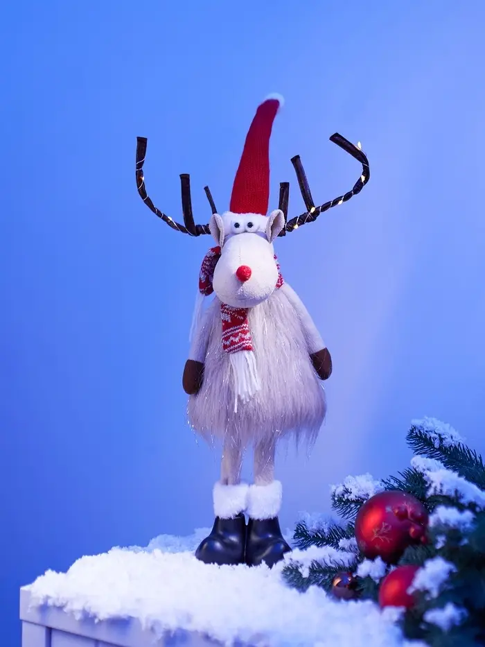 Питание от батарейки CR2032 делает эту светящуюся композицию автономной и полностью безопасной — никаких проводов, никакого шума. Благодаря лёгкому текстильному корпусу и устойчивому каркасу лосик легко размещается на любой поверхности — будь то праздничный стол, полка или окно.