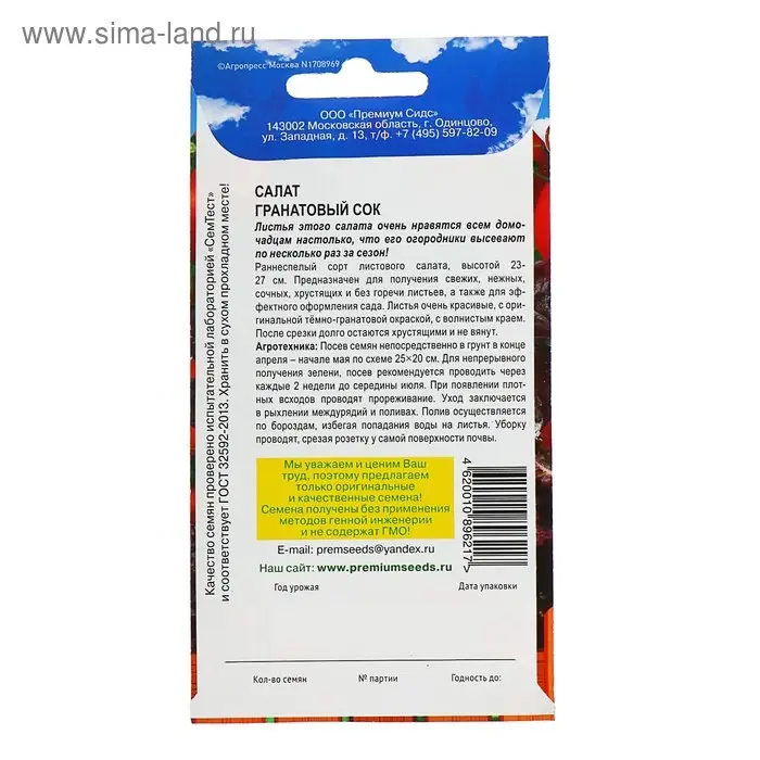 Семена Салат "Гранатовый сок", 0,3 г