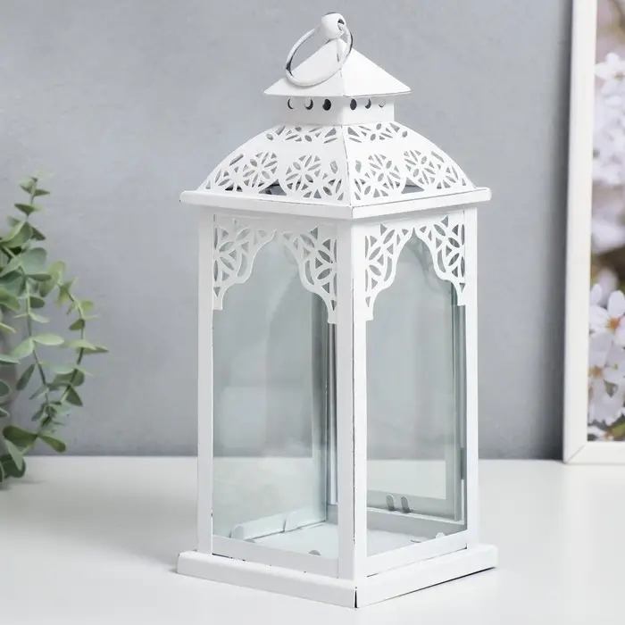 Подсвечник металл "Фонарь - ажур" белый 11,5х11,5х29 см