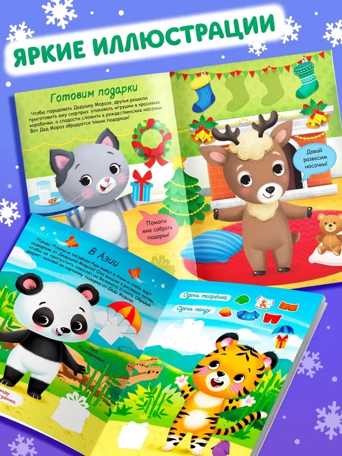 Набор книг «Наклейки-одевашки» создан специально для любителей клеить наклейки и читать волшебные истории. Занятия с ней помогут малышу скоротать время в ожидании праздника и потренировать важные навыки.