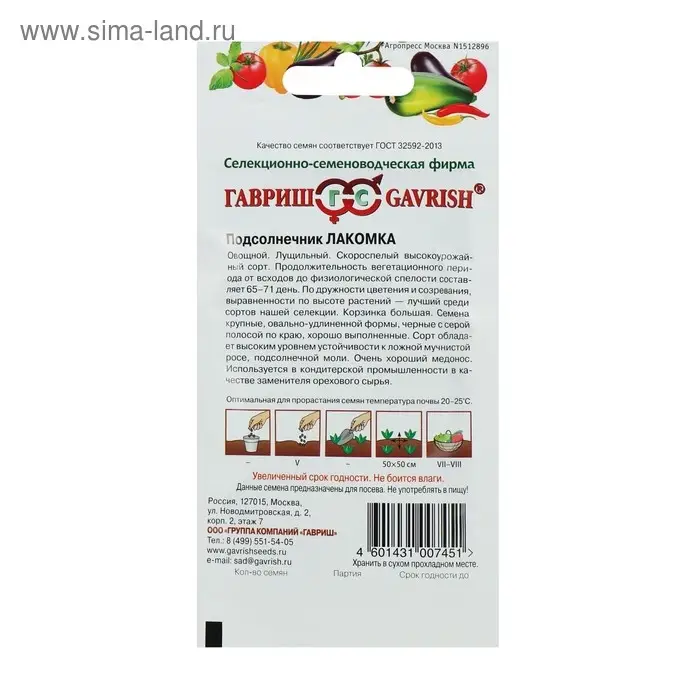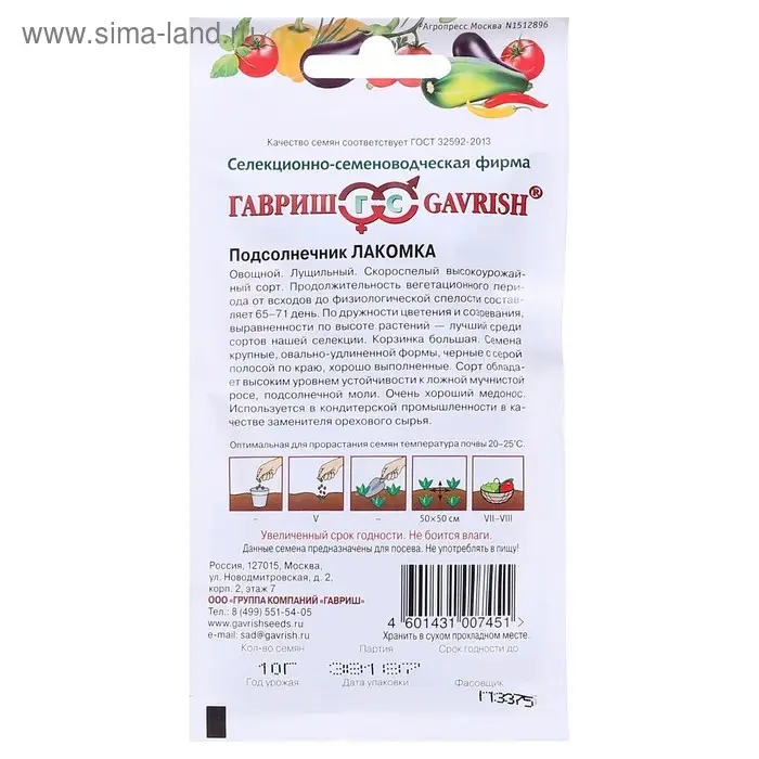 Семена Подсолнечник «Лакомка», цветной пакет, 10 г