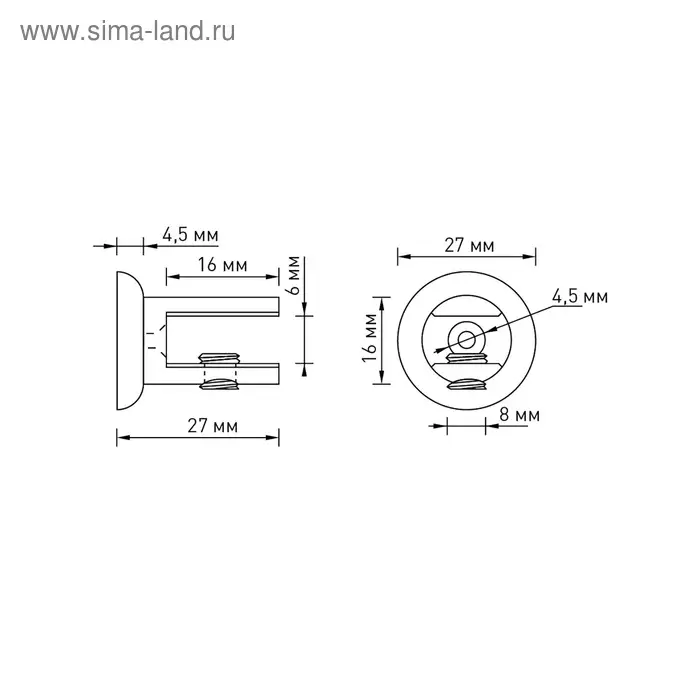 Полкодержатель, для полки до 6 мм, цвет хром
