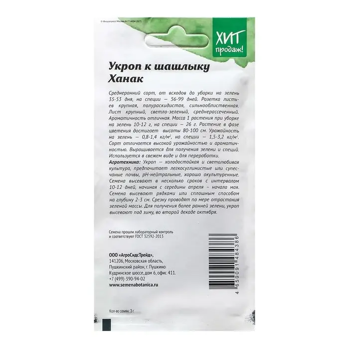 Семена Укроп "Ханак для зелени", 3 г