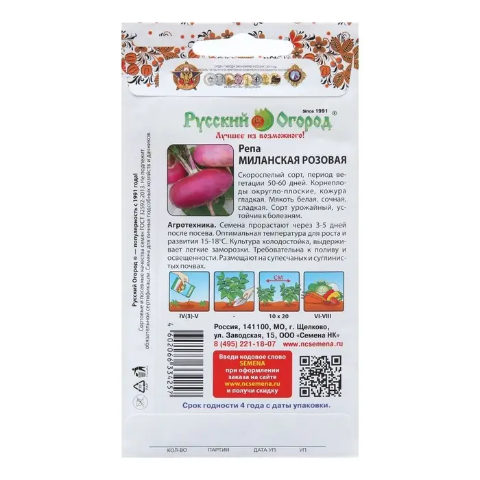 Семена Репа "Миланская розовая", ц/п, 1 г