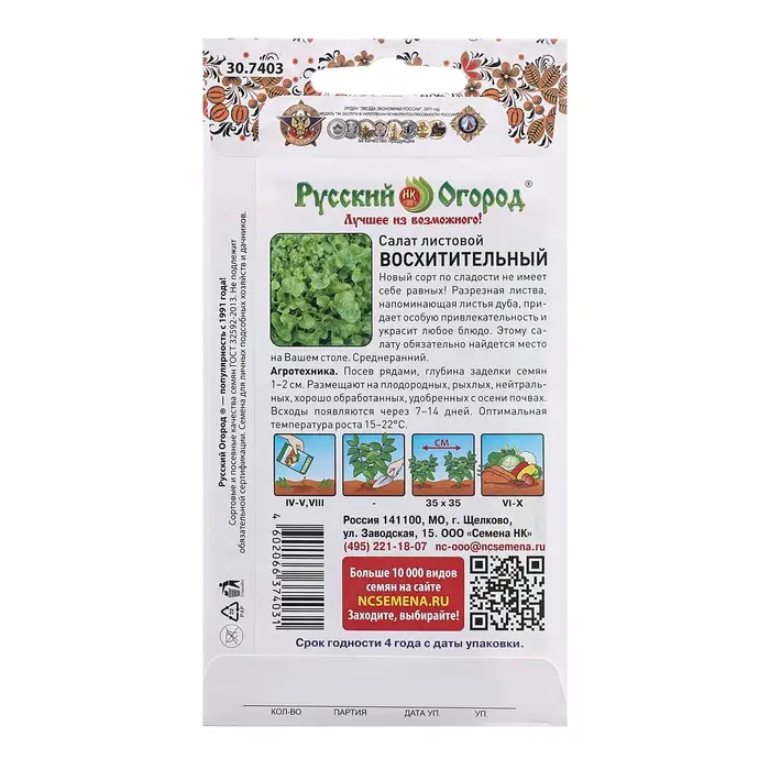 Семена Салат листовой "Восхитительный" смесь, ц/п, 200 шт.