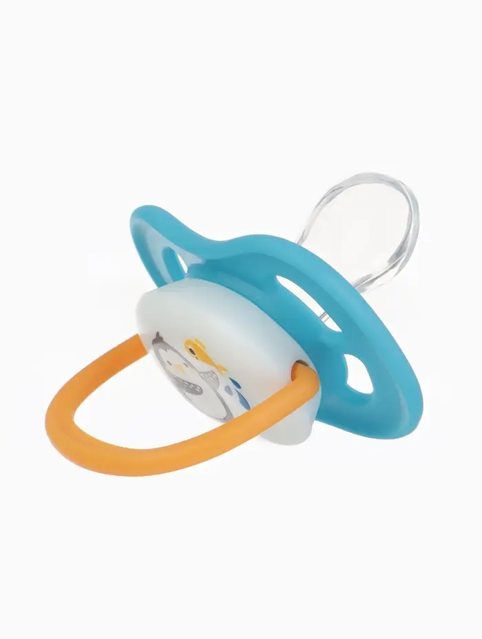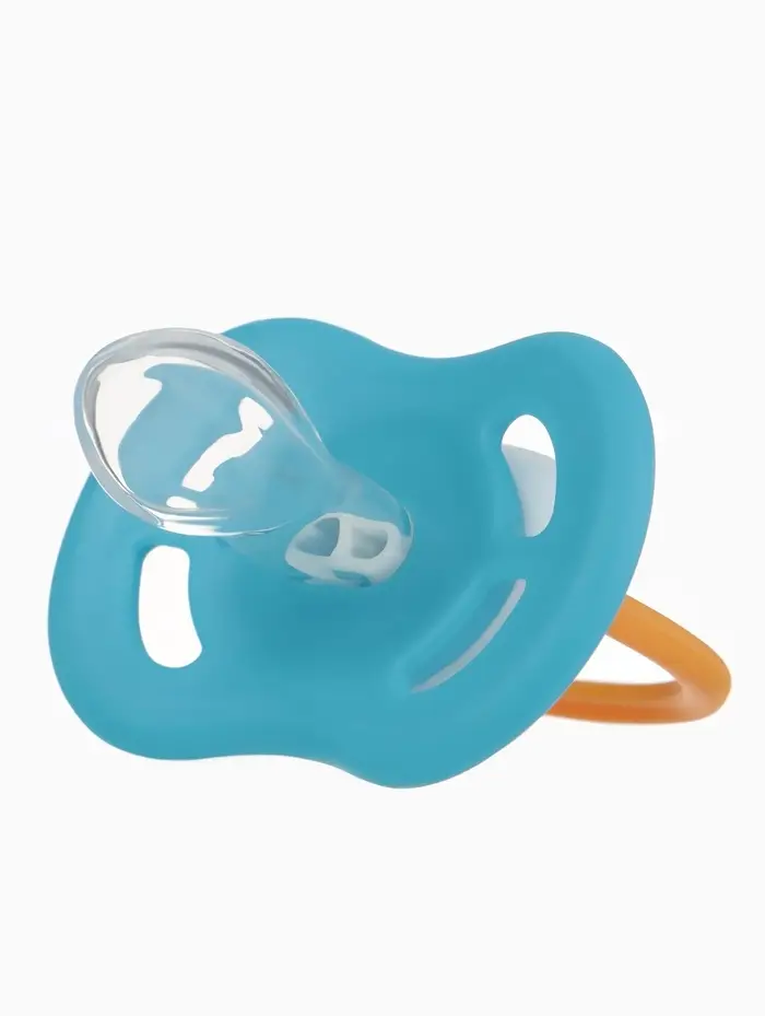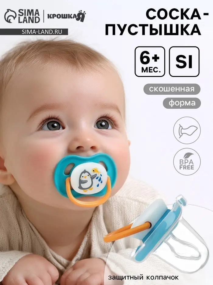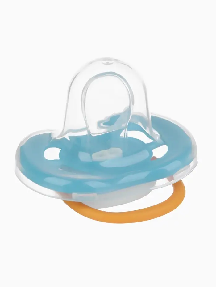 Соска‑пустышка для детей от 6 месяцев. Скошенная форма соски способствует правильному развитию ротовой полости. Изготовлена из 100 % силикона, не содержит бисфенола А. Нагубник в форме «бабочки» комфортно прилегает к лицу, обеспечивая циркуляцию воздуха. В комплекте — защитный колпачок для гигиены и удобного хранения.