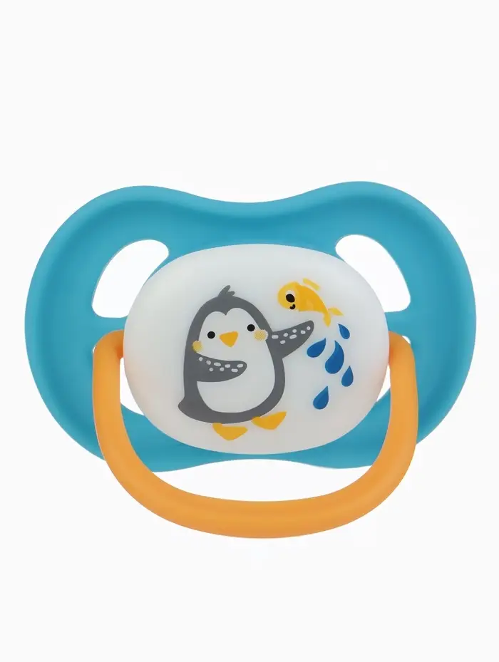 Соска - пустышка ортодонтическая «Пингвин», +6 мес., цвет голубой