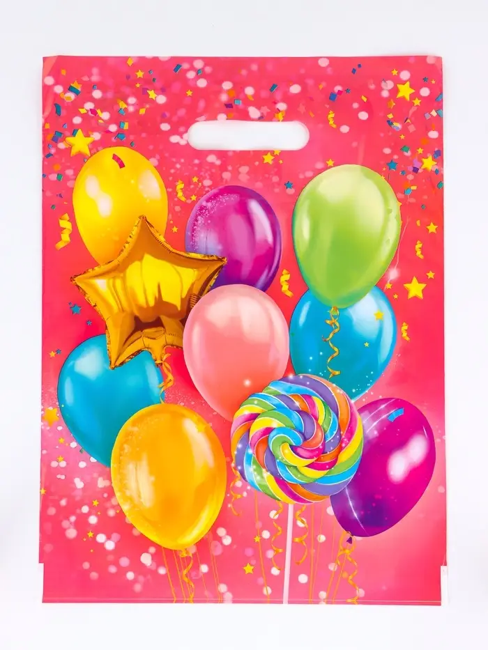 Идеальное решение для дней рождений: Этот пакет используют для упаковки подарков в магазинах игрушек, кондитерских, книжных и сувенирных магазинах. Праздничный дизайн избавляет от необходимости в дополнительном декоре — упаковка сразу создает нужное настроение. Яркое оформление особенно нравится детям и подросткам, но подходит и для взрослых, ценящих позитивные эмоции.