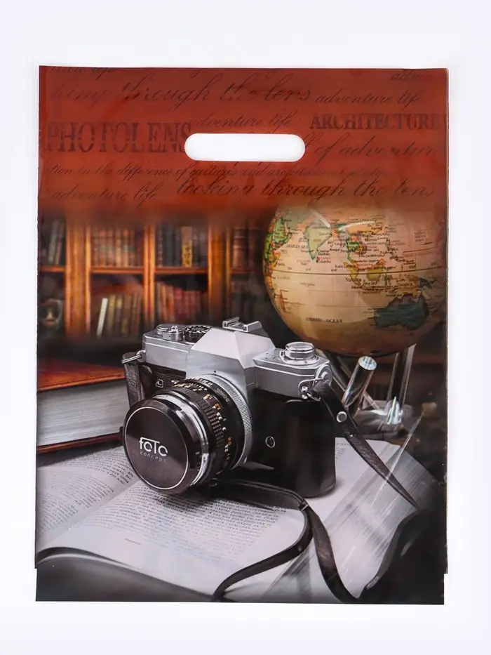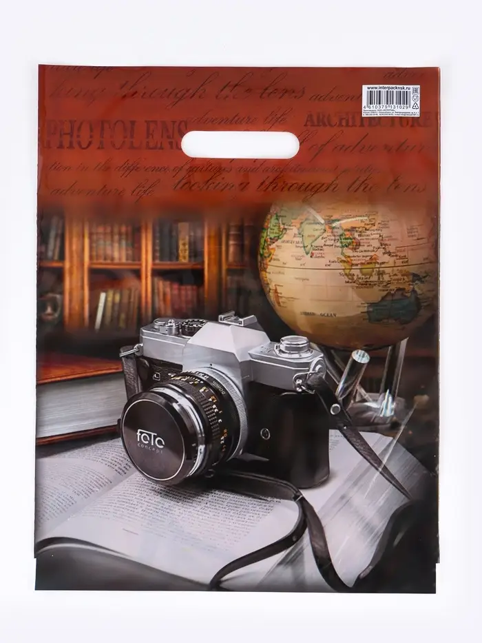 Творческий подход к упаковке подарков: Этот пакет выбирают для упаковки презентов в магазинах фототехники, книжных магазинах, художественных салонах и магазинах подарков. Тематический дизайн особенно ценится творческими людьми и профессионалами. Упаковка становится отражением интересов получателя — от выбора подарка до его вручения.