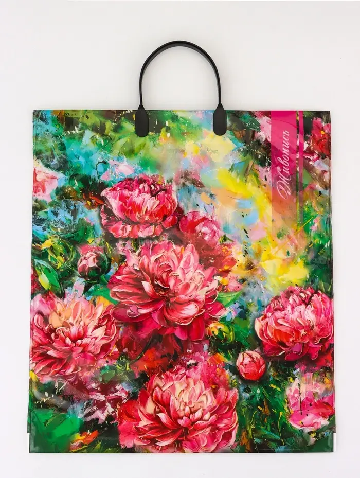 Подарочная упаковка с художественным оформлением! Пакет «Живопись» с пластиковой ручкой и цветочным принтом — это стильное решение для подарков женщинам. Увеличенная плотность материала и рельефные ручки создают ощущение ценности.