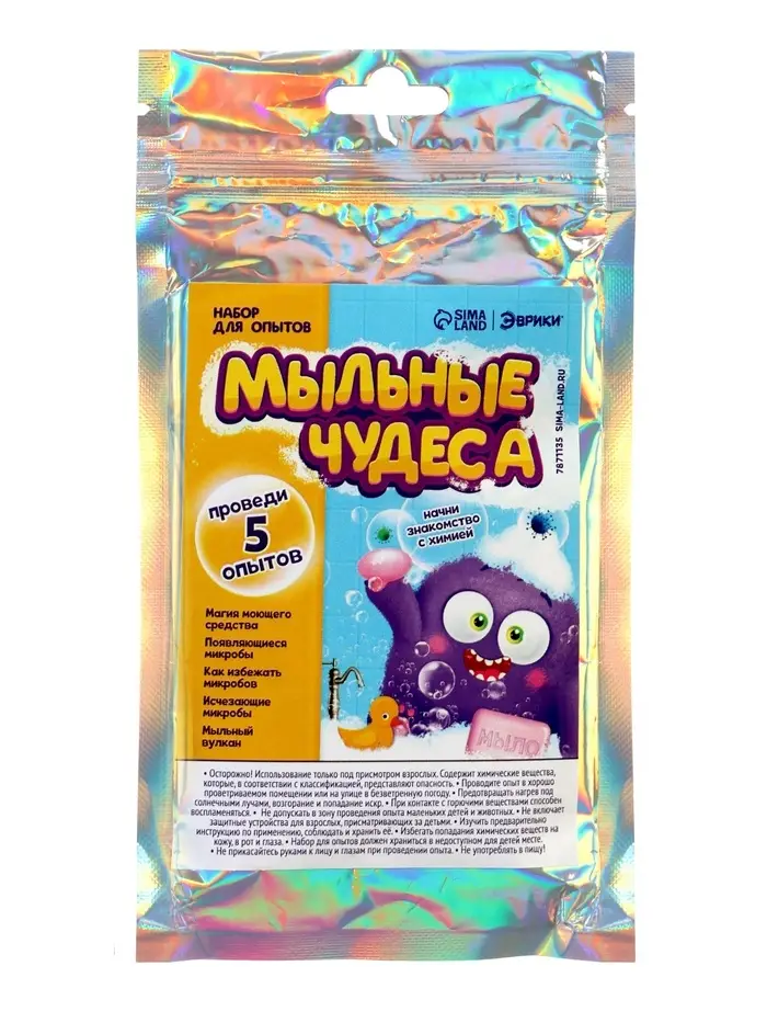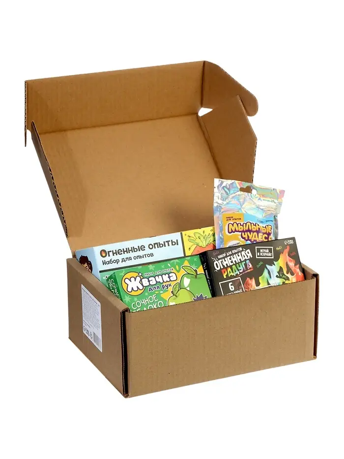 Этот праздничный комплект собрал в себе яркие, эффектные и безопасные эксперименты, которые позволят ребёнку почувствовать себя настоящим исследователем. Внутри коробки — сразу четыре полноценных набора для опытов и дополнительный новогодний сюрприз. Все эксперименты подобраны так, чтобы увлечь ребёнка зрелищными реакциями, знакомыми ароматами и красочными превращениями. Это отличный способ совместить игру, творчество и первые шаги в мире химии.