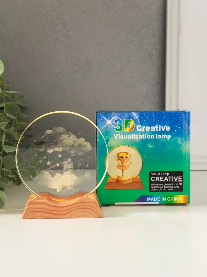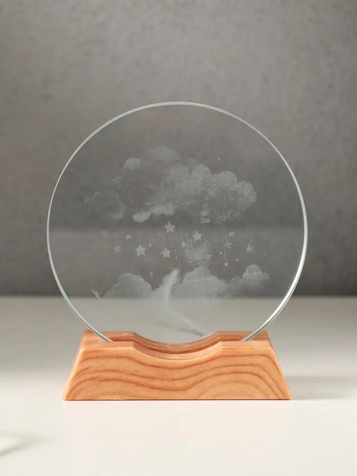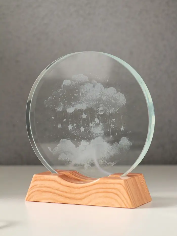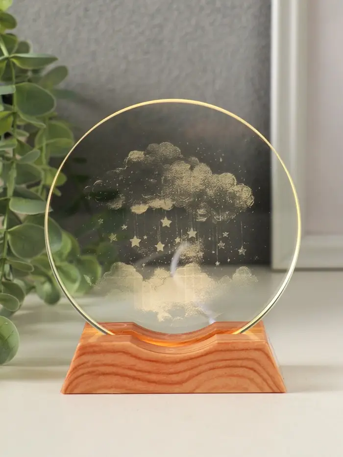 Сувенир стекло свет "Диск. Облако со звёздами" 5хLED d=10 см, USB 10х4х11,4 см