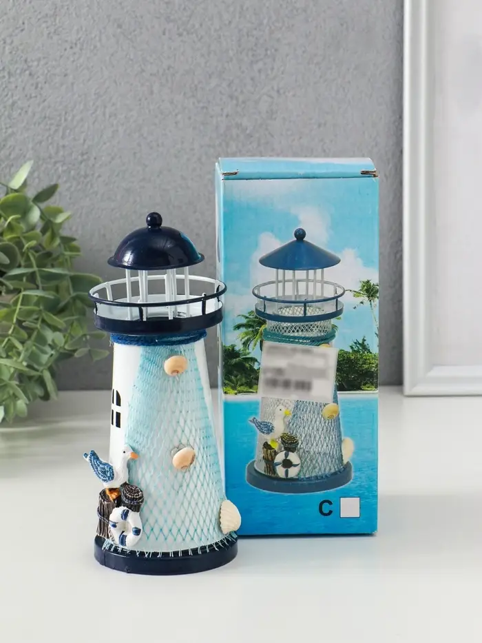 Сувенир настольный "Маяк с птицей" сетка, синий, 3хLR1130, RGB, LED 7,5х7,5х18 см