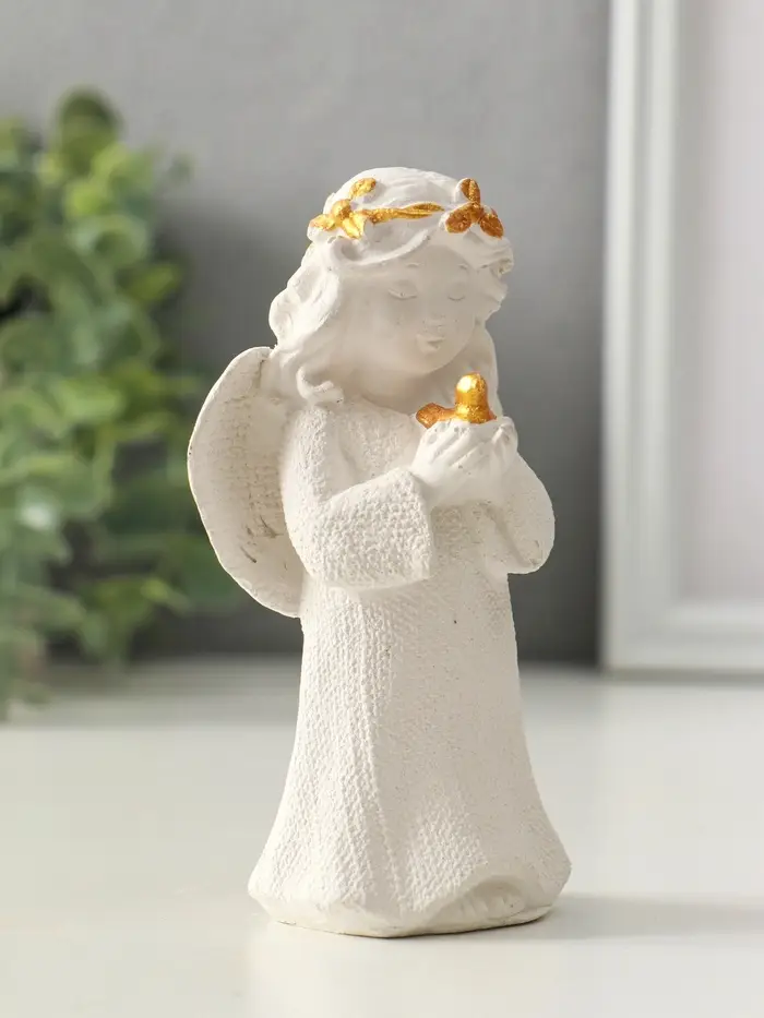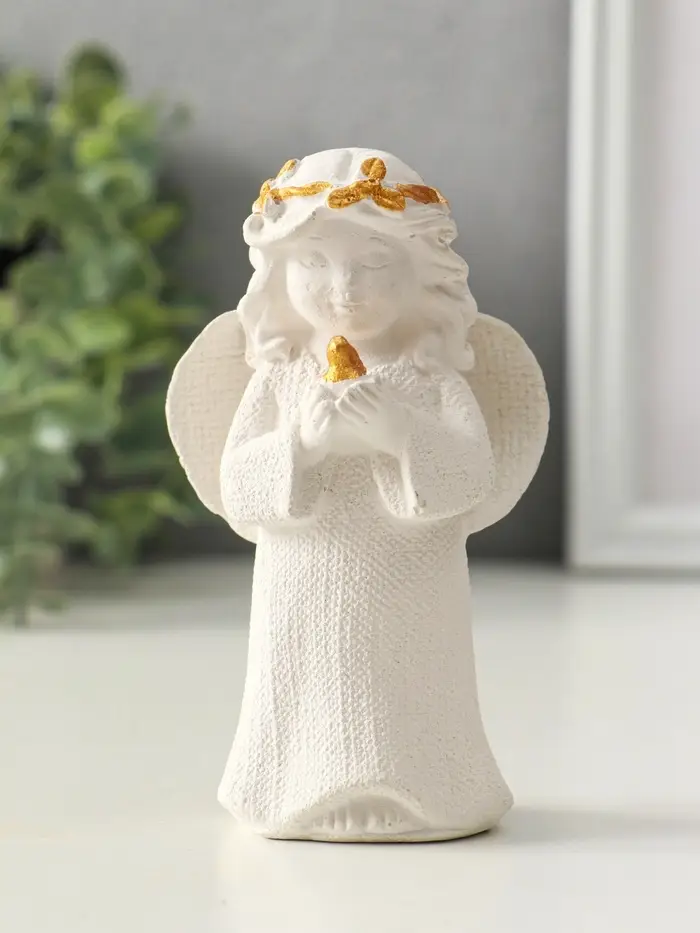Фигура "Ангел с птицей" размер 11х7х4 см, белый с позолотой