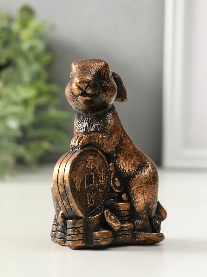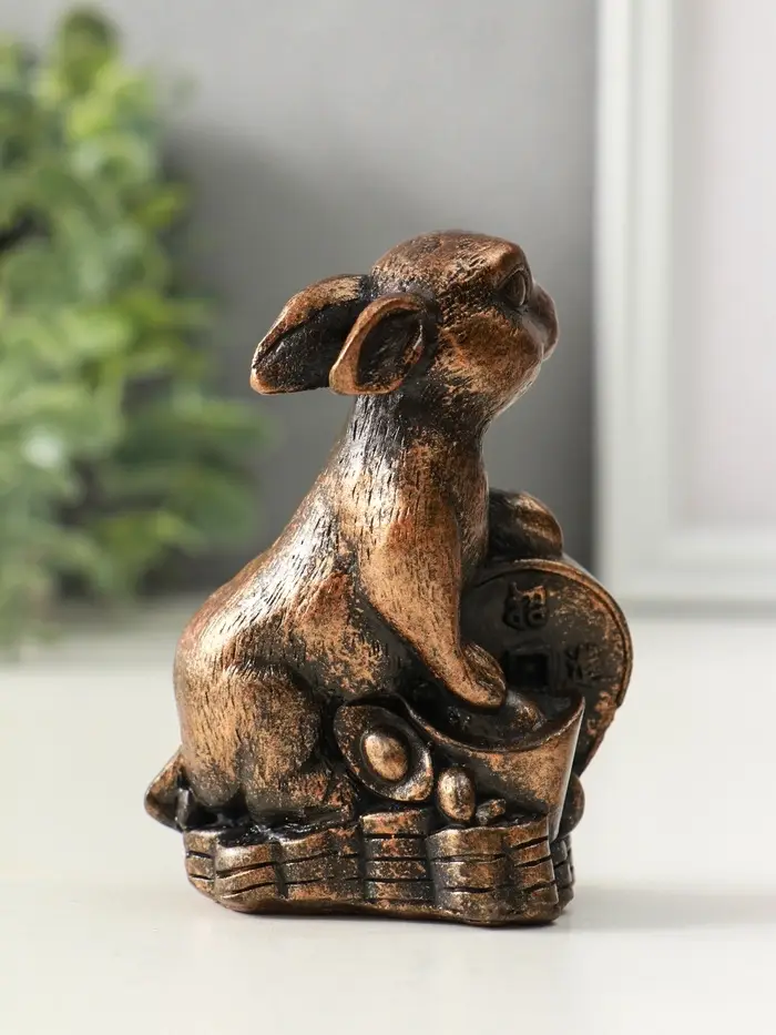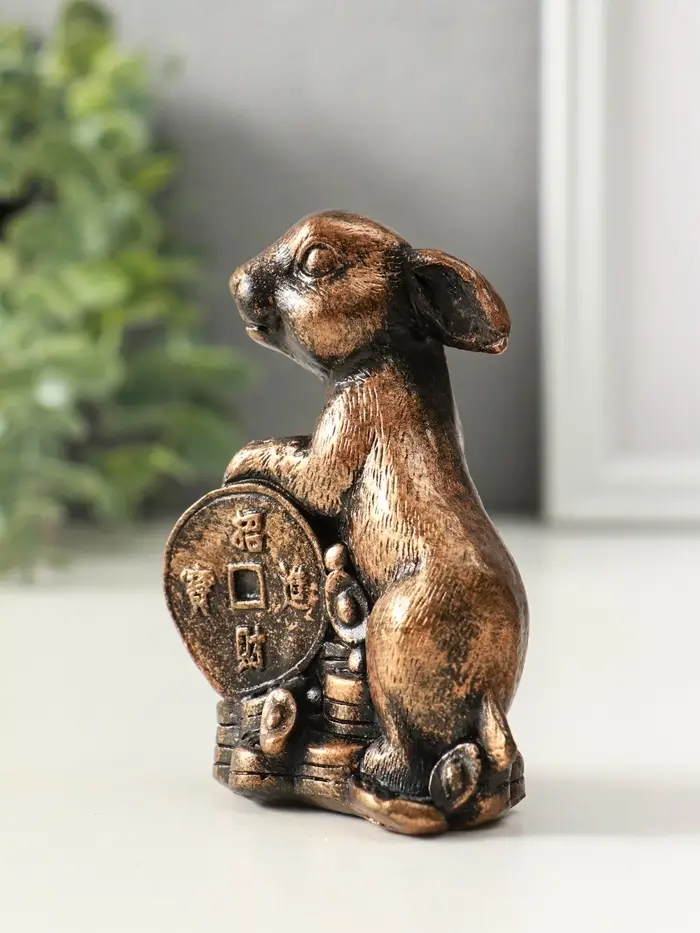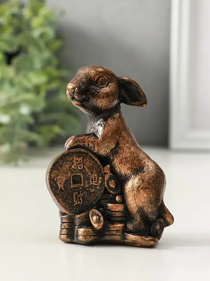 Фигура "Заяц на деньгах", высота 10 см, цвет винтажная бронза