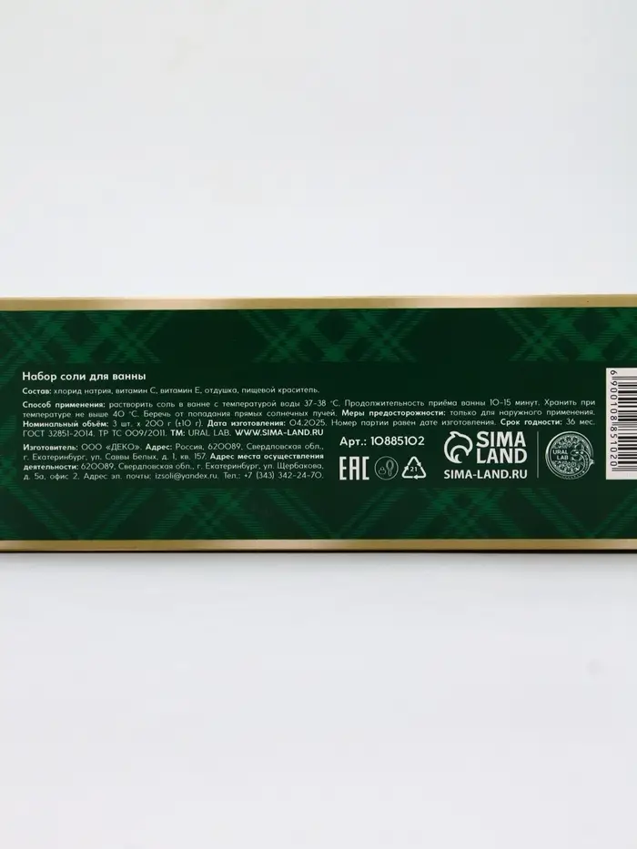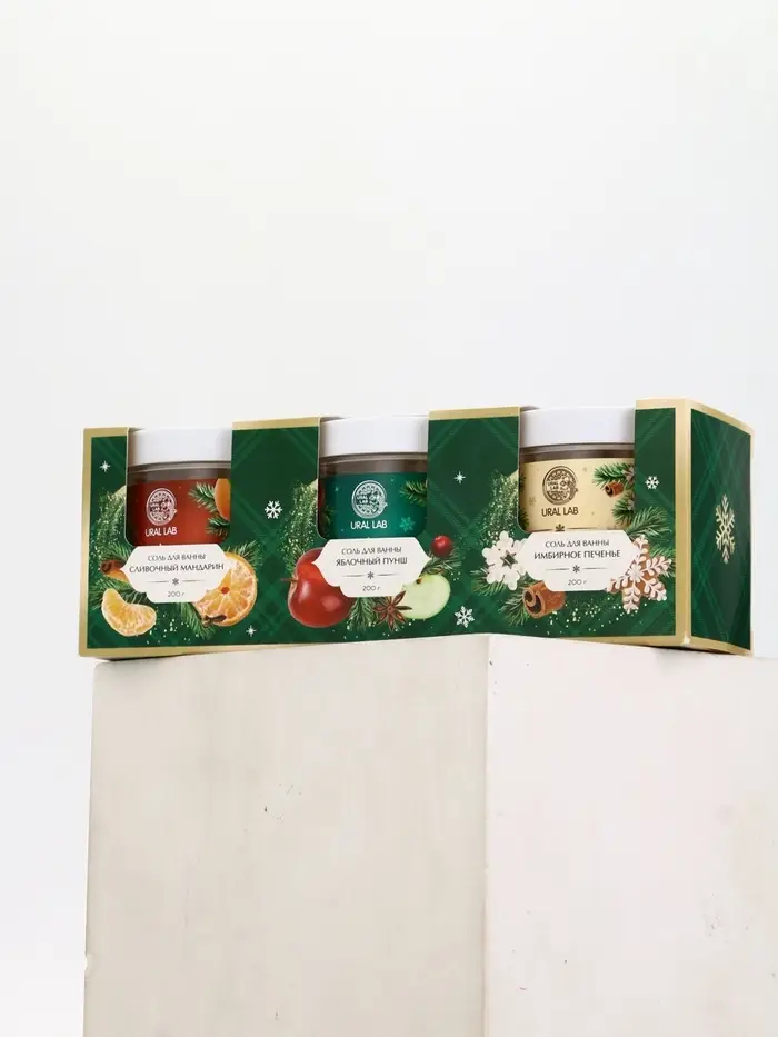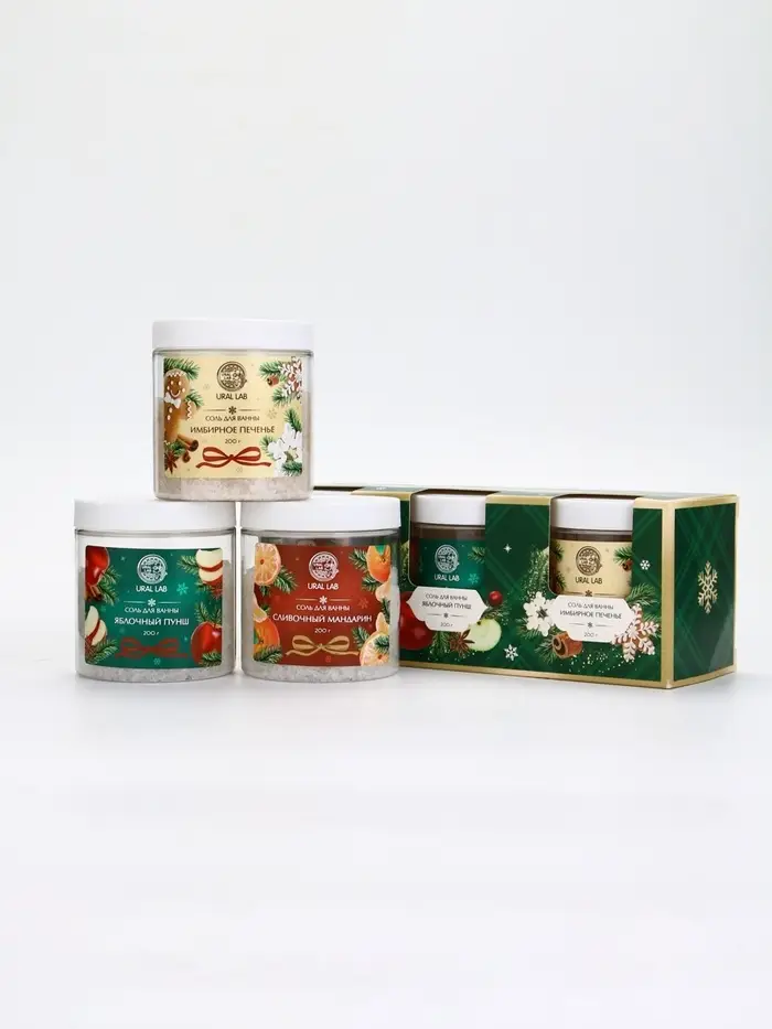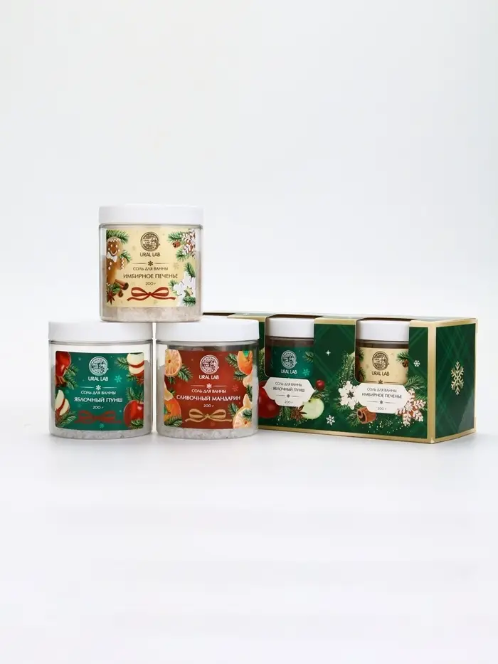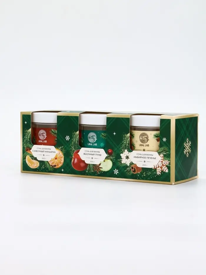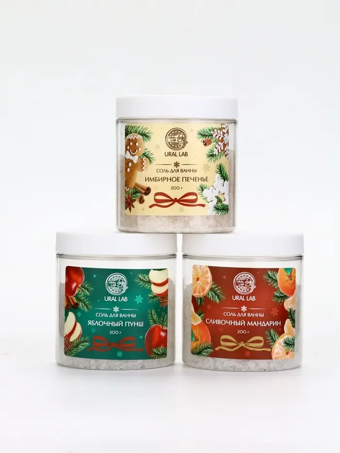 Соль для ванны, набор 3 шт х 200 г, мандарин, яблочный пунш, имбирное печенье, URAL LAB