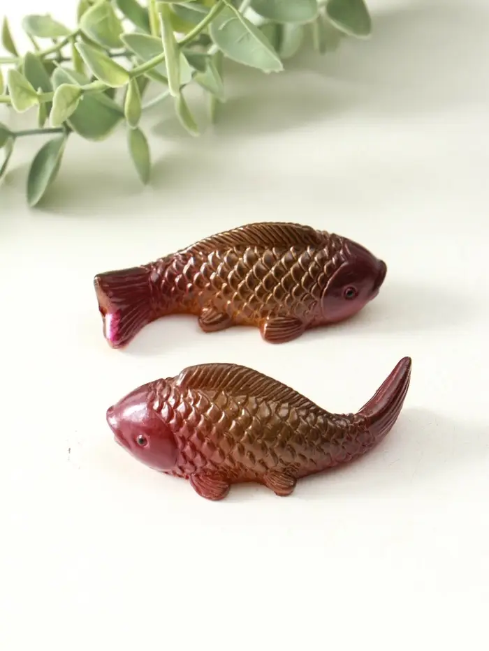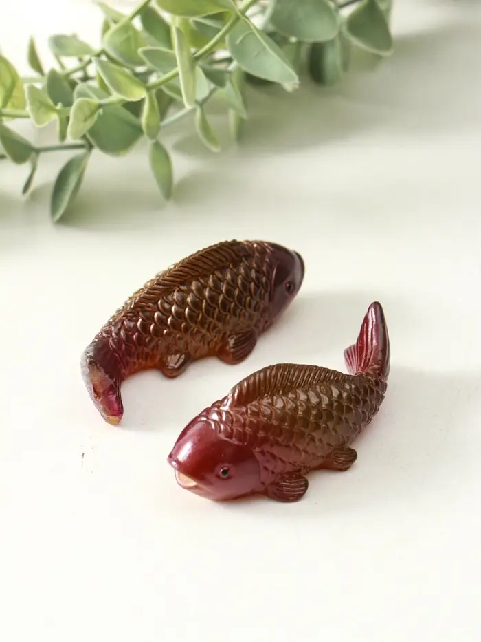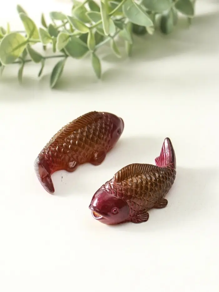Фигурка для чайной церемонии "Красные парчовые карпы" набор 2 шт меняет цвет 3х7,5х3 см