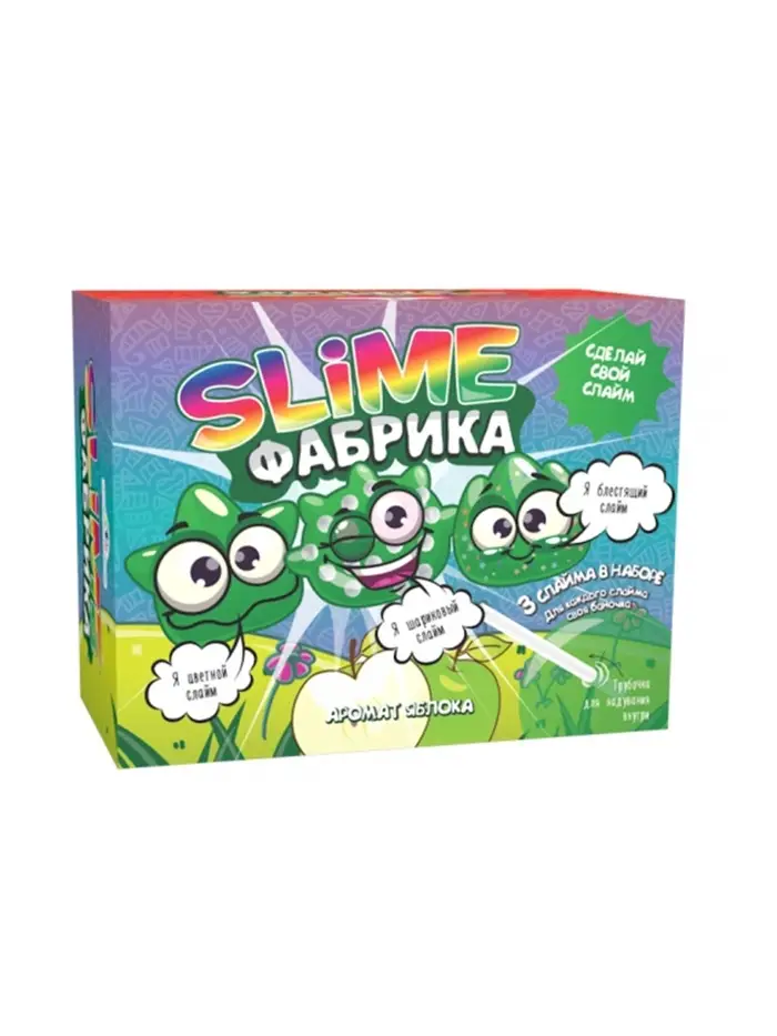Создай Слайм. Слайм фабрика "Яблоко" 3 слайма в наборе.
