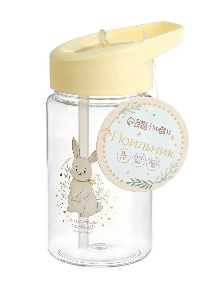Поильник детский с трубочкой «Зайка», 350мл., цвет бежевый Mum&Baby
