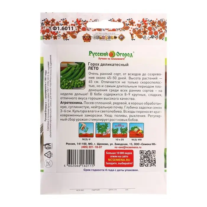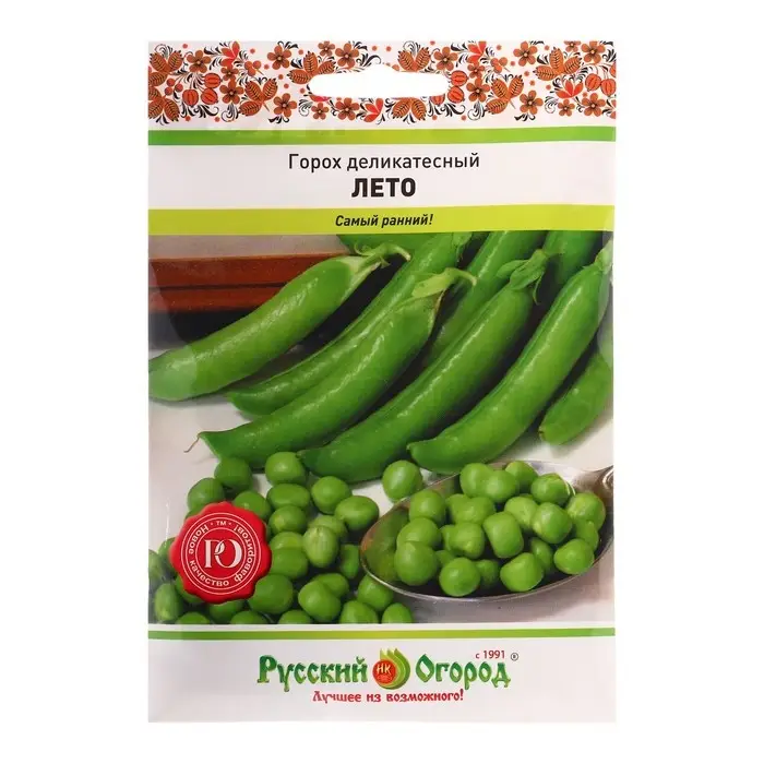 Горох Лето - отличается не только скороспелостью, но и самым длительным периодом плодоношения среди всех ранних сортов – на неделю дольше! Ещё больше вкусного и любимого урожая для вас и всей вашей семьи! Сорт ранний, от всходов до созревания проходит около 45-50 дней. Высота растения небольшая, всего 45 см. И это при обилии вкуснейшего урожая! Таким образом, вы можете сэкономить место на участке, не ставить высокие опоры, но при этом наслаждаться полезными бобами. В каждом бобе содержится 8-9 крупных сладких горошин.