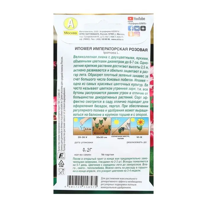Семена Цветов Ипомея "Императорская розовая", 0,2 г