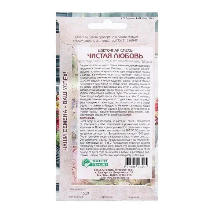 Семена Цветов Цветочная смесь Чистая Любовь, 15 драже