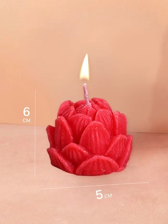 Фигурная свеча «Лотос» — красный цветок из соевого воска, высотой 6 см. Её лепестки чётко прорисованы, а насыщенный бордово-красный оттенок создаёт ощущение глубины и спокойствия. Без аромата, но с выразительной формой, она подходит для медитации, декора спальни или как символичный элемент восточного интерьера.