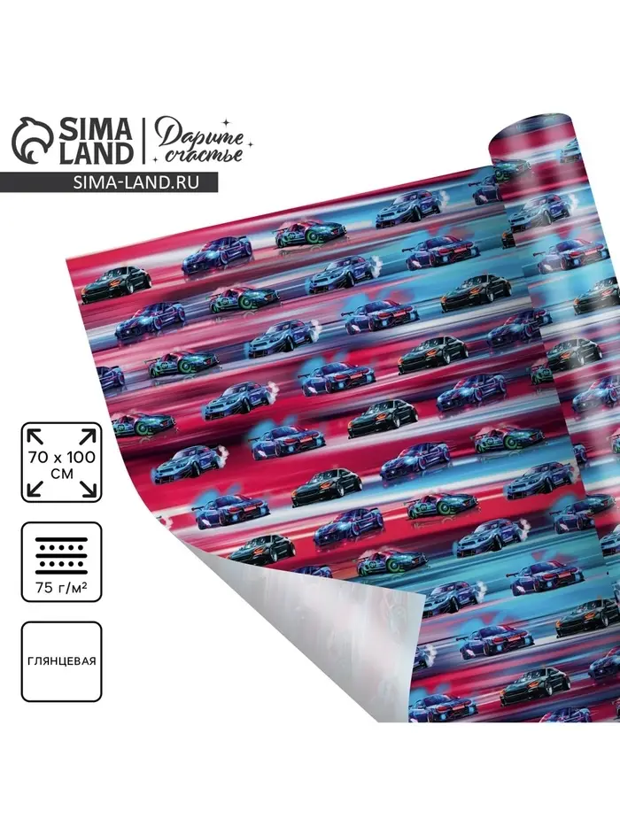 Бумага упаковочная глянцевая «Машинки», 70 х 100 см