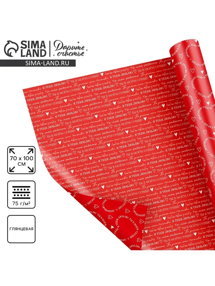 Бумага упаковочная глянцевая двухсторонняя «Для тебя», 70 х 100 см