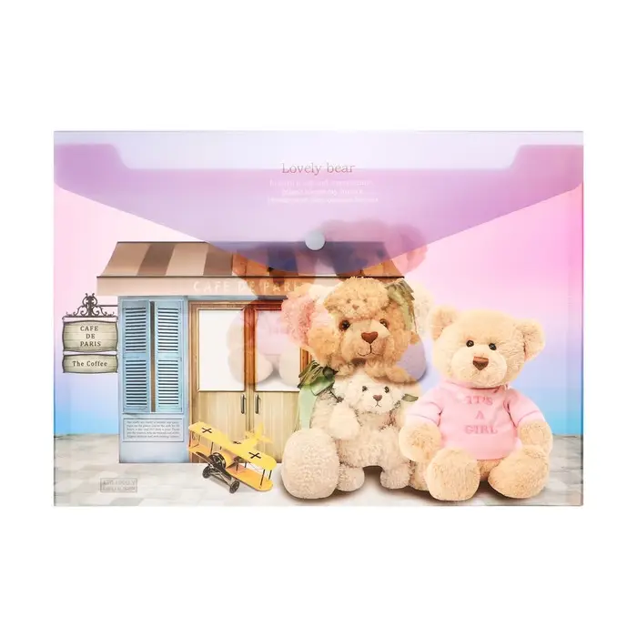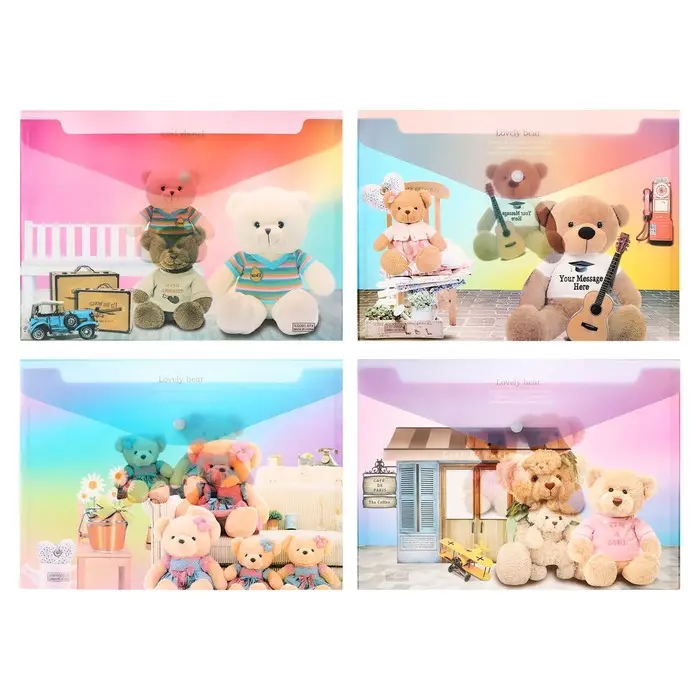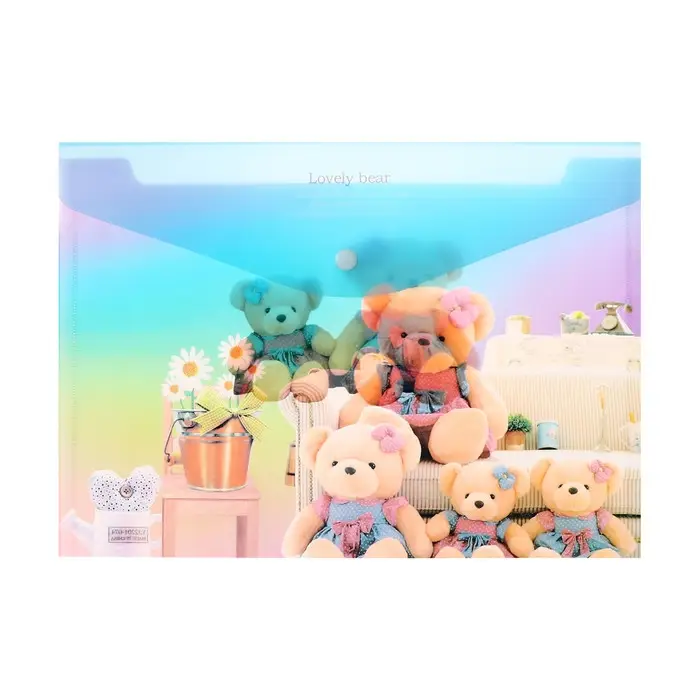 Папка-конверт на кнопке, А4, 180 мкм, "Мишка", МИКС