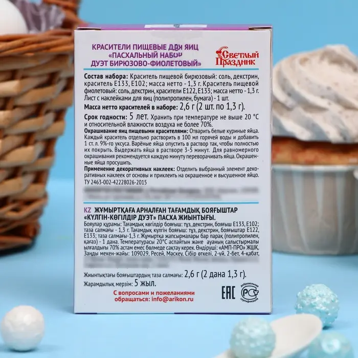 Пищевой краситель для яиц "Пасх. набор "ДУЭТ бирюзово-фиолетовый", 2.6 г