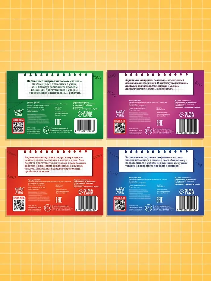 «Карманные шпаргалки для 7–11 класса» — это 4 книги, в которых самое важное собрано так, чтобы понять, запомнить и найти за 10 секунд. Математика, русский язык, физика, химия — никакой воды, только суть, схемы и рабочие формулы, которые реально пригодятся на уроке, контрольной или ЕГЭ.