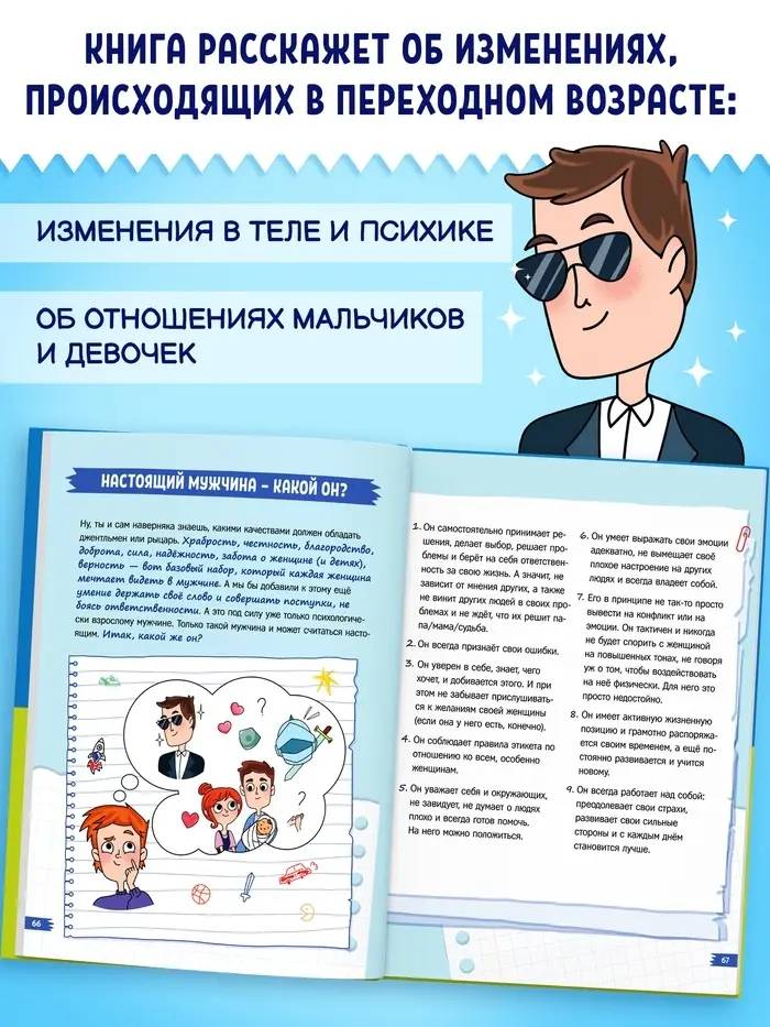 - Мальчикам 9–14 лет. Особенно тем, кто замечает изменения в теле или слышит от сверстников «уже всё знает».