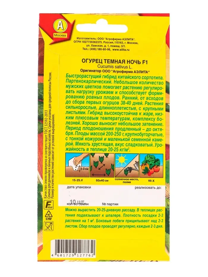 Семена Огурец китайский Темная ночь F1 Ор. А Парт, Ц/П,10 шт.