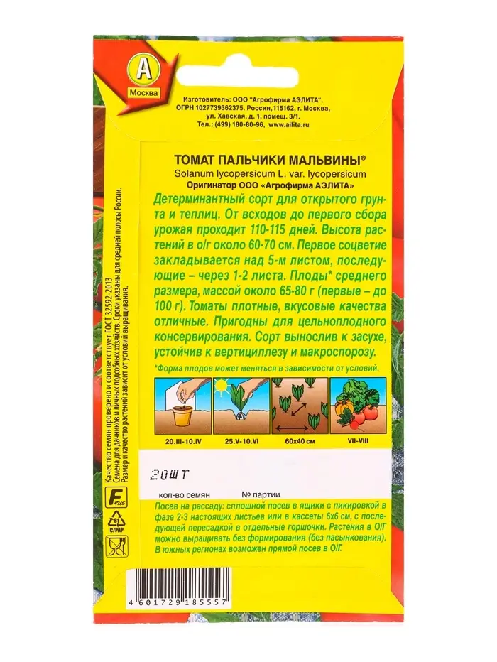 Семена Томат Пальчики Мальвины Р, Ц/П,20 шт.