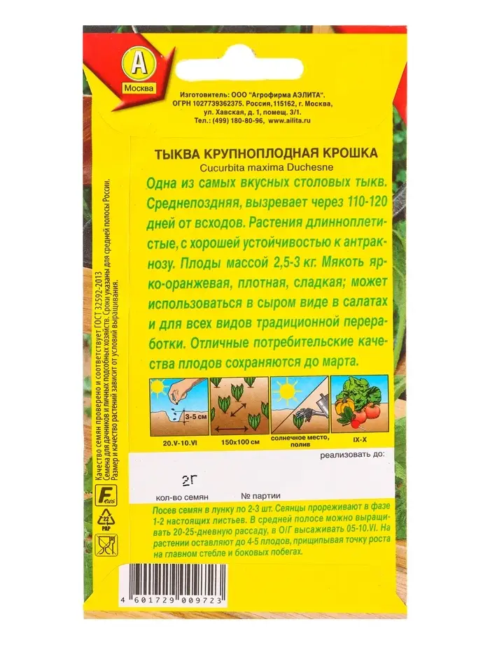 Семена Тыква крупноплая Крошка, Ц/П,2 г