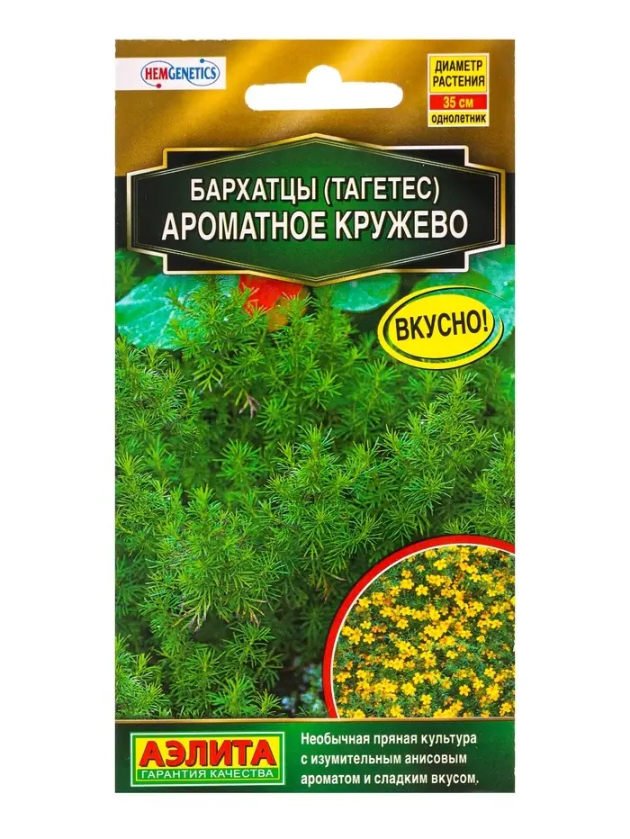 Семена цветов Бархатцы Ароматное кружево С. Hem Genetics Золотая серия, Ц/П,5 шт.