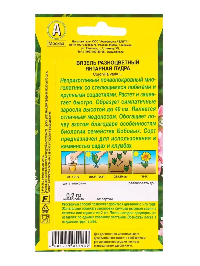 Семена цветов Вязель Янтарная пудра Мн, Ц/П,0,2 г